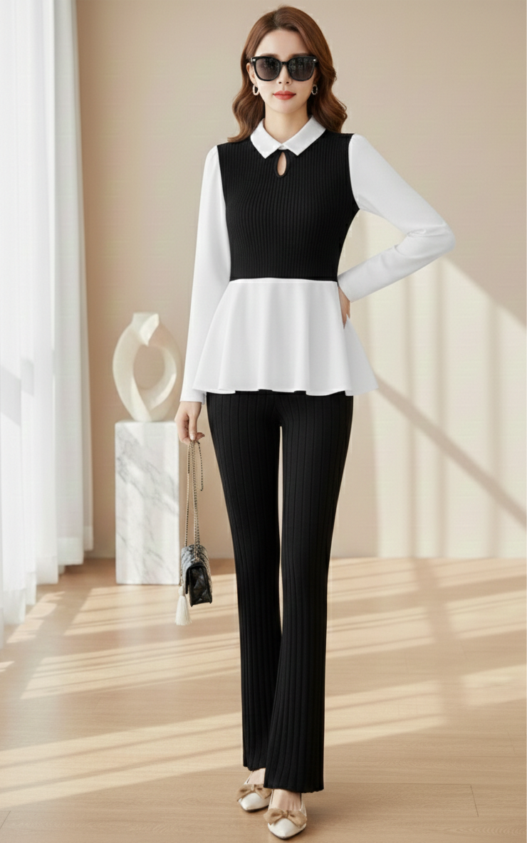 Long Sleeve Peplum Top and Pants Set