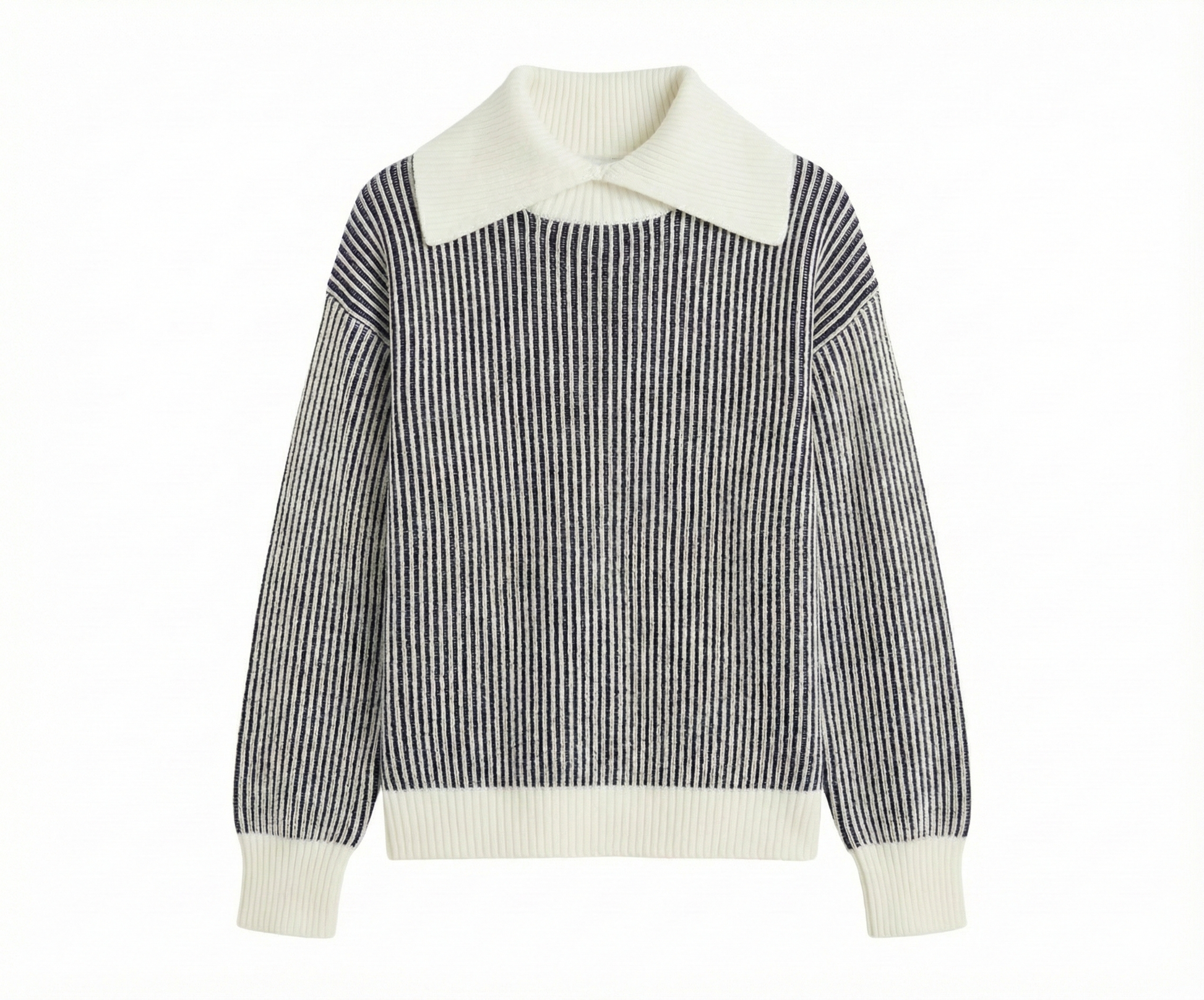 Striped Knit Sweater with Contrast Collar